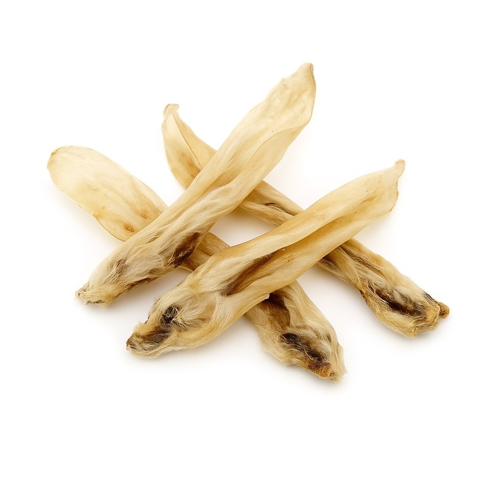 Deze gedroogde konijnenoren zonder haar zijn rijk aan eiwitten, bevatten natuurlijke vezels en zijn zacht genoeg voor jonge of oudere honden. Dankzij hun milde structuur zijn ze ook ideaal voor gevoelige magen.
